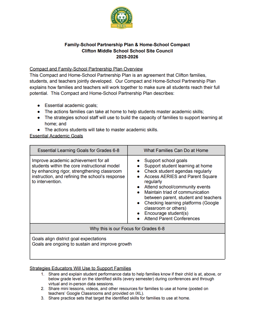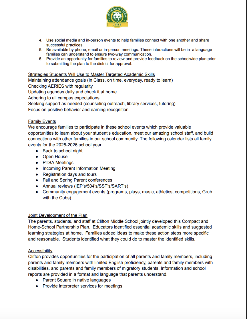 Final Clifton Family Engagement Policy and Compact 2025-2026 (1)